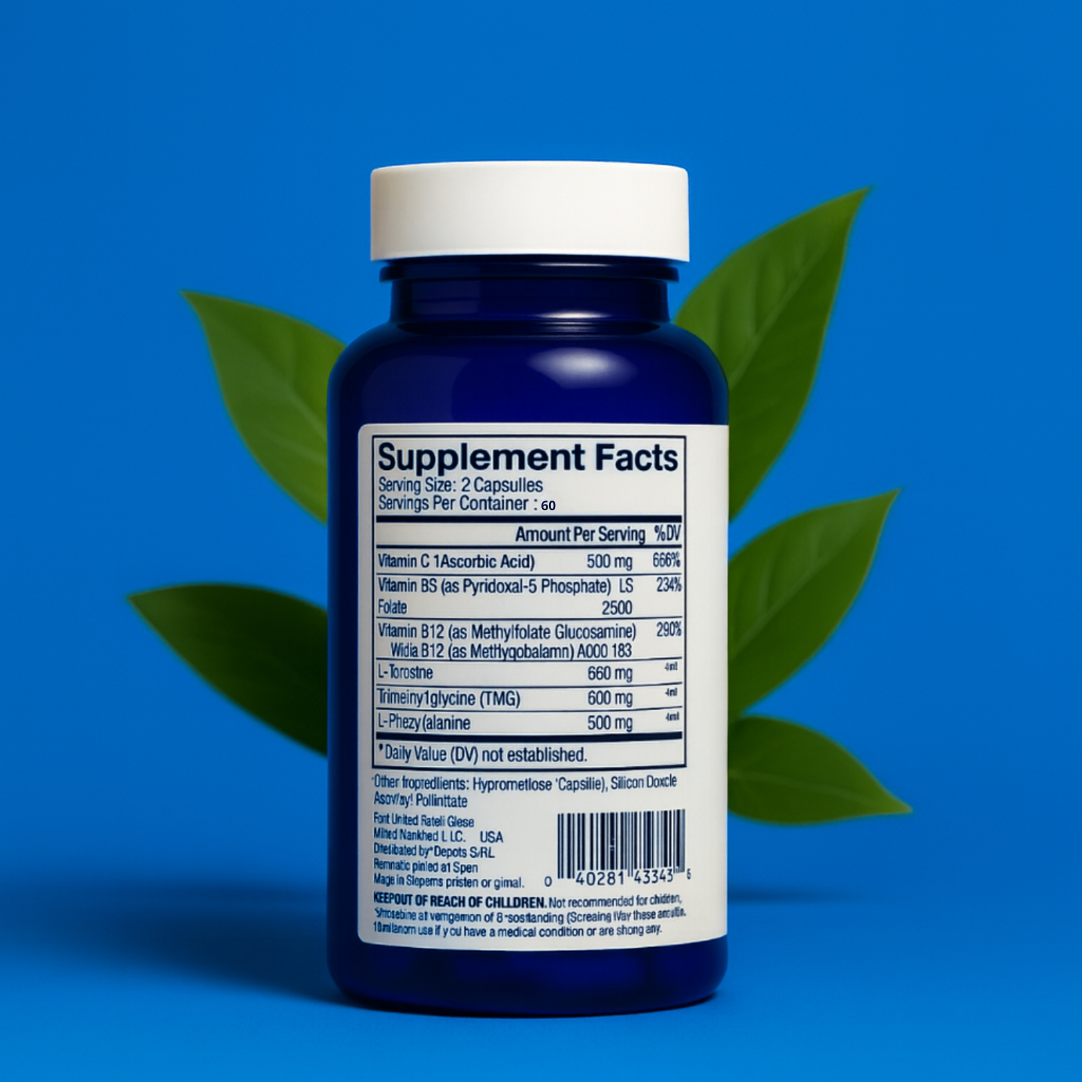 Reduces stress levels and donates methyl groups in chemical reactions essential for synthesizing neurotransmitters.